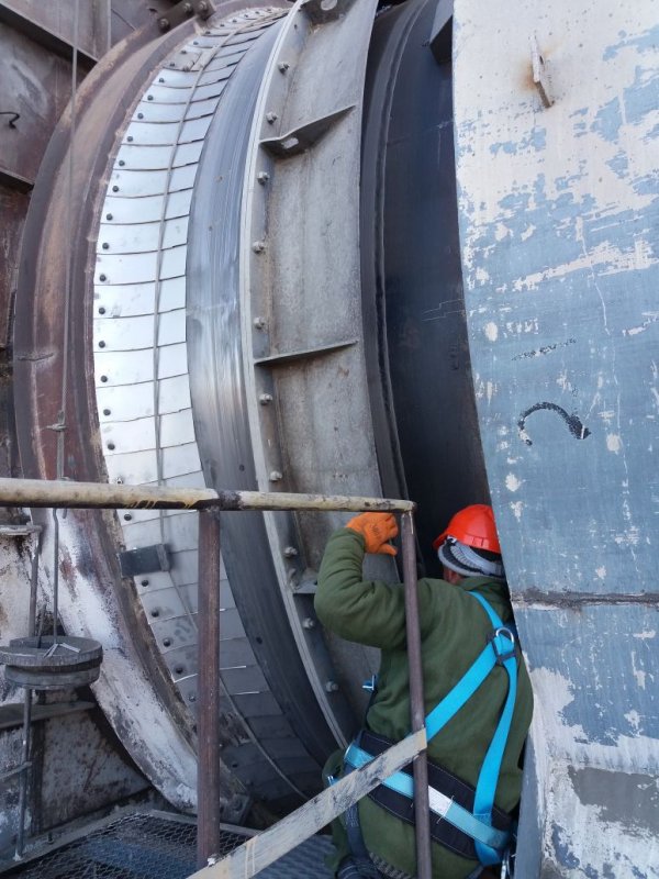 Кап. ремонт основного оборудования: Демонтаж, монтаж лепестков уплотнения горячего конца печи;демонтаж,монтаж опорнопружинного крепления обечайки печи; демонтаж, монтаж форсунки печи; Ремонт и ревизия угольной мельницы. (замена болтов броней,наплавка входящей, выходящей печки угольной мельницы,демонтаж, монтаж воздуховода фильтра угольной мельницы)