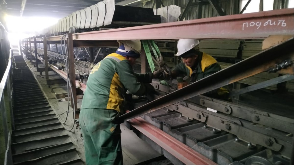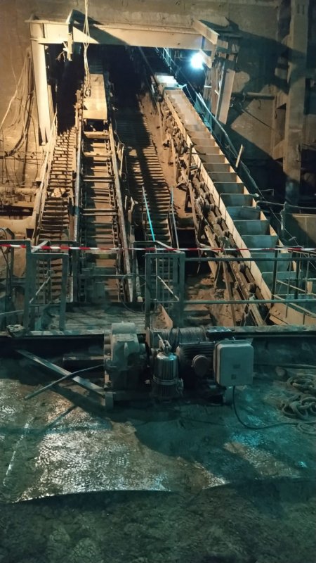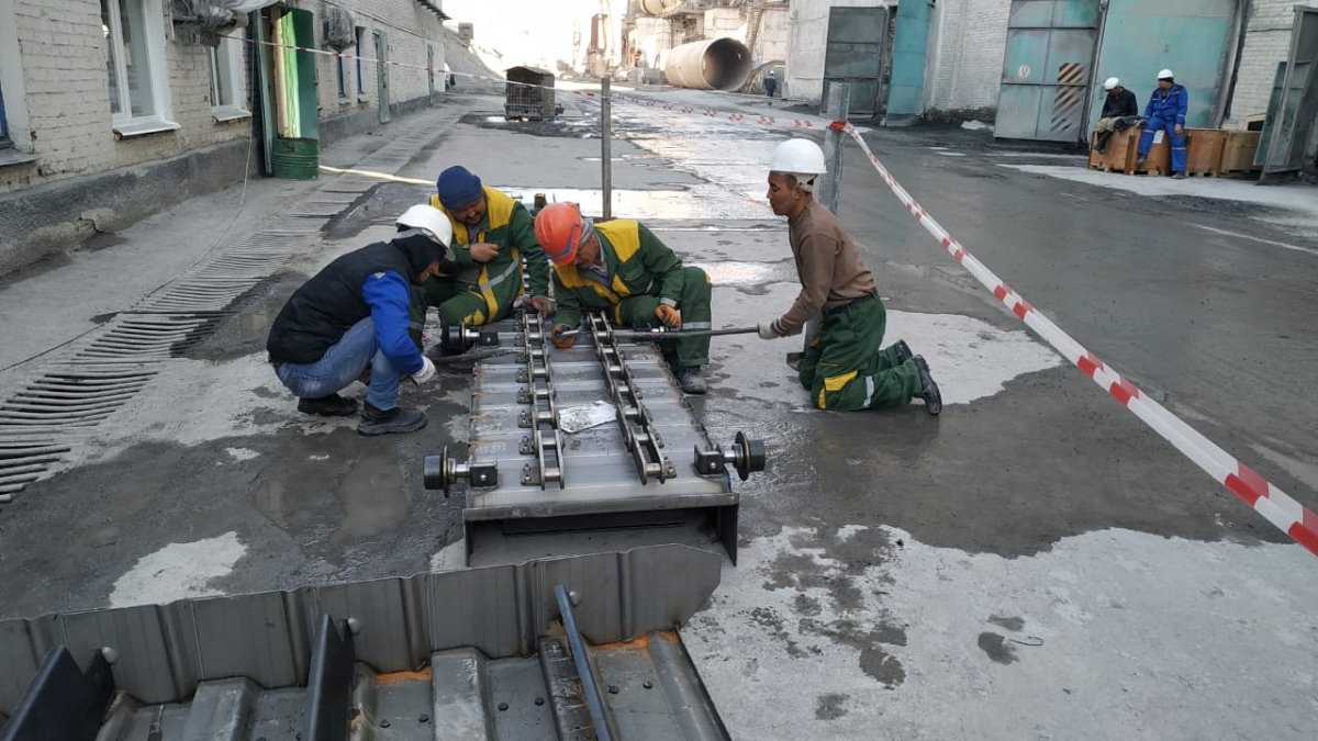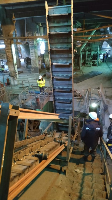 В период с 18.03.2019 - 29.04.2019 г. выполнены работы по демонтажу старого,изготовлению и монтажу нового клинкерного транспортера печи №3.